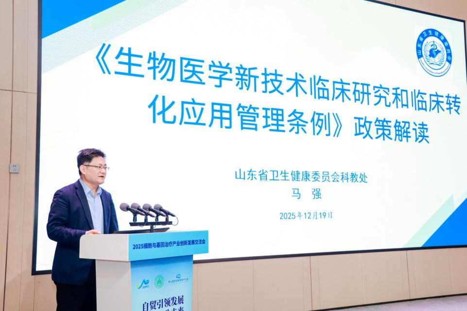 随后,山东省卫生健康委科技教育处处长、一级调研员马强,围绕国家近期发布的《生物医学新技术临床研究和临床转化应用管理条例》进行政策解读,指导广大医疗机构和企业规范开展生物医学新技术研发应用。
