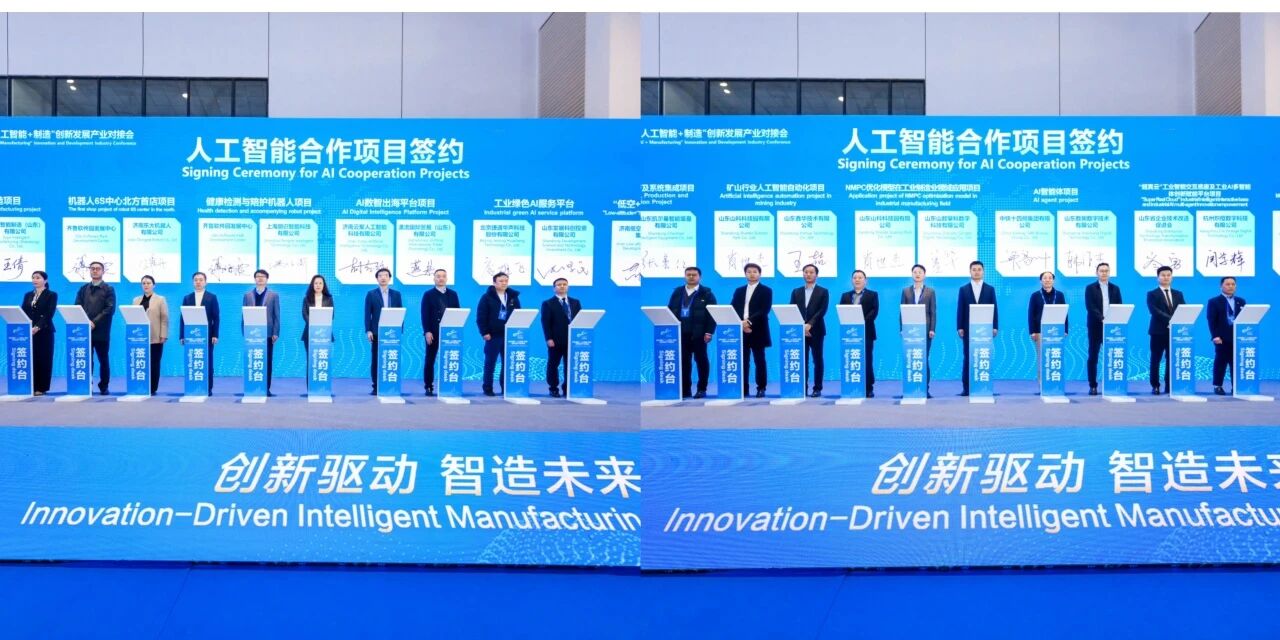 山东科创・黄河科创中心凭借优质的科创载体服务、成熟的产业培育体系与显著的产业集聚成效,获评中国(山东)自由贸易试验区济南片区人工智能联动创新基地。并在现场签约多个合作项目,覆盖了工业制造、智能算法等核心领域,为人工智能与制造业深度融合注入新动能。